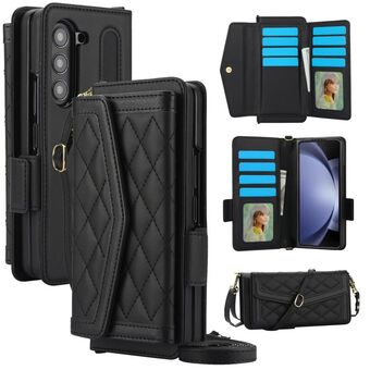 For Samsung Galaxy Z Fold5 Splicing Rhombic Texture Card Holder Phone Case with Lanyard, Not Included Pen(Black)