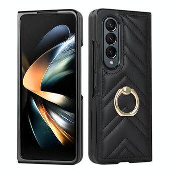 For Samsung Galaxy Z Fold4 V-shaped Folding Phone Case with Rotating Ring(Black)