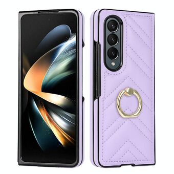 For Samsung Galaxy Z Fold4 V-shaped Folding Phone Case with Rotating Ring(Purple)