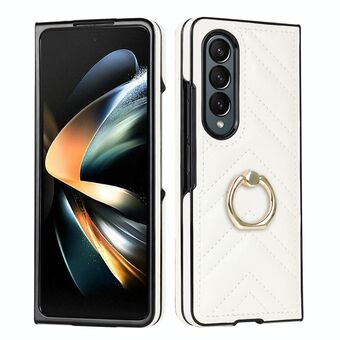 For Samsung Galaxy Z Fold4 V-shaped Folding Phone Case with Rotating Ring(White)