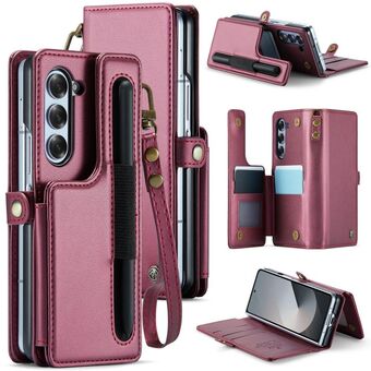 Για Samsung Galaxy Z Fold6 5G CaseMe C22 PC + TPU Business Style RFID Anti-theft Lanyard Δερμάτινη θήκη τηλεφώνου με υποδοχή για στυλό (κόκκινο κρασί) (CaseMe)
