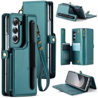 Για Samsung Galaxy Z Fold6 5G CaseMe C22 PC + TPU Business Style RFID Anti-theft Lanyard Δερμάτινη θήκη τηλεφώνου με υποδοχή για στυλό (μπλε πράσινο) (CaseMe)