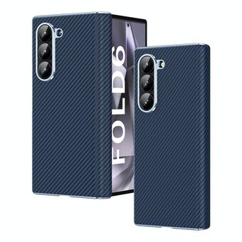 Για Samsung Galaxy Z Fold6 5G Electroplated Carbon Fiber Pattern Πτυσσόμενη θήκη τηλεφώνου με μεντεσέ (μπλε)