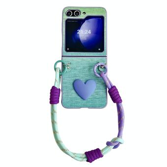 Για Samsung Galaxy Z Flip6 ψευδαισθησία χρώμα δέρμα υφή PC υπόθεση τηλεφώνου με χρώμα λουράκι (πράσινο)