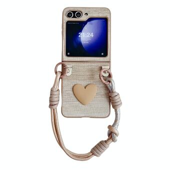 Για Samsung Galaxy Z Flip6 ψευδαισθησία χρώμα δέρμα Υφή PC υπόθεση τηλεφώνου με χρώμα λουράκι (καφέ)
