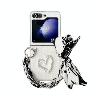 For Samsung Galaxy Z Flip6 Diamond Square 3D Heart Pattern Full Coverage Phone Case with Scarf / Bracelet(White)