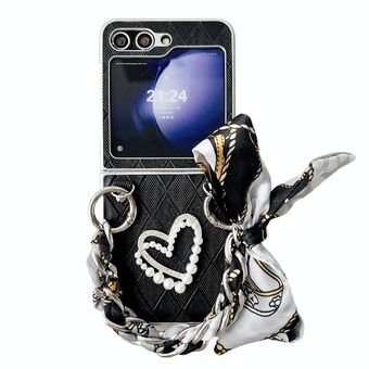 For Samsung Galaxy Z Flip5 Diamond Square 3D Heart Pattern Full Coverage Phone Case with Scarf / Bracelet(Black)