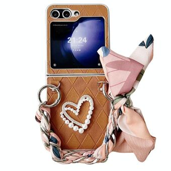 For Samsung Galaxy Z Flip5 Diamond Square 3D Heart Pattern Full Coverage Phone Case with Scarf / Bracelet(Brown)