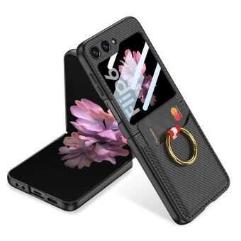 For Samsung Galaxy Z Flip6 GKK Integrated Ultra-thin Leather Card Slots Phone Case with Ring Holder(Carbon Fiber Black) (GKK)