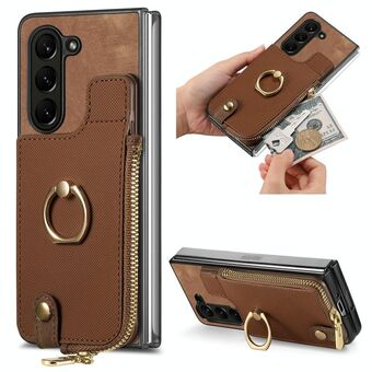 Για Samsung Galaxy Z Fold6 5G Retro φερμουάρ πορτοφόλι δαχτυλίδι Δερμάτινη θήκη τηλεφώνου (καφέ)