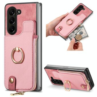 Για Samsung Galaxy Z Fold6 5G Retro φερμουάρ πορτοφόλι δαχτυλίδι Δερμάτινη θήκη τηλεφώνου (ροζ)