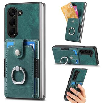Για το Samsung Galaxy Z Fold6 5G 5G Retro δέρμα αίσθηση δαχτυλίδι δαχτυλίδι πολλαπλών καρτών πορτοφόλι υπόθεση τηλεφώνου (πράσινο)