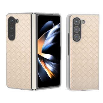 For Samsung Galaxy Z Fold5 5G Woven Texture Frosted Translucent Frame PU Phone Case(Beige)
