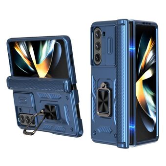 For Samsung Galaxy Z Fold6 5G Sliding Window Hinge Phone Case with Ring Stand(Blue)