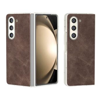 For Samsung Galaxy Z Fold5 5G PU Leather Frosted Transparent Edge Phone Case(Coffee)