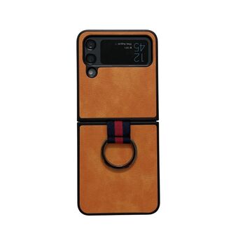 For Samsung Galaxy Z Flip4 Yellow Cow Texture PU Phone Case With Ring(Brown)