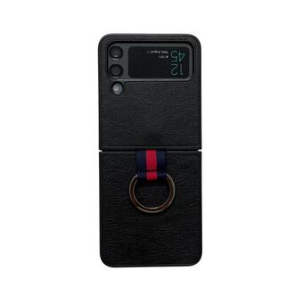 For Samsung Galaxy Z Flip4 Morocco Texture PU+TPU+PC Shockproof Phone Case With Ring(Black)
