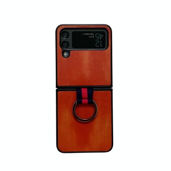 For Samsung Galaxy Z Flip4 Two-color Litchi Texture Phone Case With Ring(Orange)