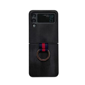 For Samsung Galaxy Z Flip4 Two-color Litchi Texture Phone Case With Ring(Black)