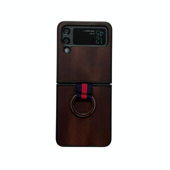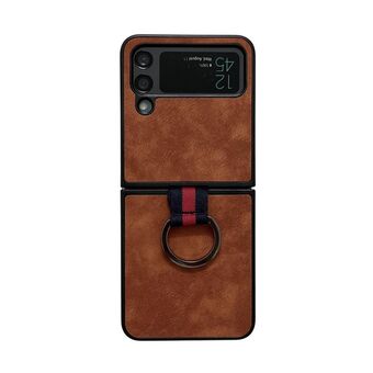 For Samsung Galaxy Z Flip4 Morocco Texture PU+TPU+PC Shockproof Phone Case With Ring(Brown)