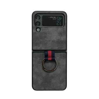 For Samsung Galaxy Z Flip4 Two-color Litchi Texture Phone Case With Ring(White)