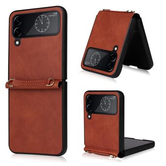 For Samsung Galaxy Z Flip4 Twill Texture Leather Phone Case with Lanyard(Brown)