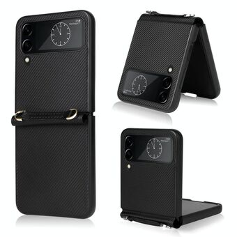 For Samsung Galaxy Z Flip4 Twill Texture Leather Phone Case with Lanyard(Black)