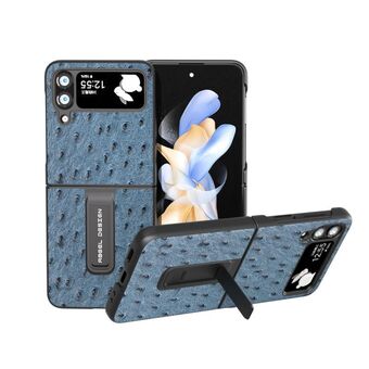 Θήκη τηλεφώνου από γνήσιο δέρμα στρουθοκάμπου για Samsung Galaxy Z Flip4 με βάση στήριξης (Καφέ)