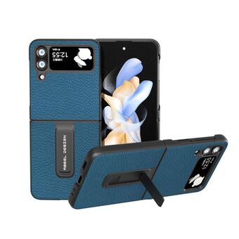 Θήκη τηλεφώνου Samsung Galaxy Z Flip4 ABEEL από γνήσιο δέρμα, σειρά Mahjong με υφή, με βάση στήριξης (Μαύρο)
