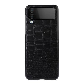 Θήκη τηλεφώνου Samsung Galaxy Z Flip4 από γνήσιο δέρμα αγελάδας με επικάλυψη κροκόδειλου (Μαύρο)
