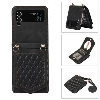 For Samsung Galaxy Z Flip4 5G Rhombic Texture RFID Phone Case with Lanyard & Mirror(Black)