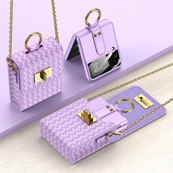 For Samsung Galaxy Z Flip4 5G Cross Texture Lanyard Ring Phone Case(Purple)