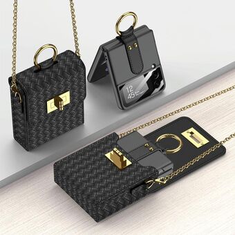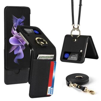 For Samsung Galaxy Z Flip4 5G Cross Texture Lanyard Ring Phone Case(Black)