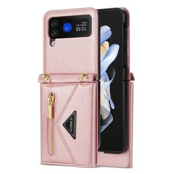 For Samsung Galaxy Z Flip4 N.BEKUS Side Zipper Folding Phone Leather Case(Pink) (N.BEKUS)