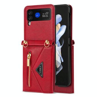 For Samsung Galaxy Z Flip4 N.BEKUS Side Zipper Folding Phone Leather Case(Red) (N.BEKUS)