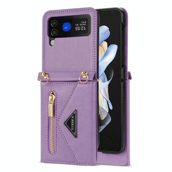 For Samsung Galaxy Z Flip4 N.BEKUS Side Zipper Folding Phone Leather Case(Purple) (N.BEKUS)