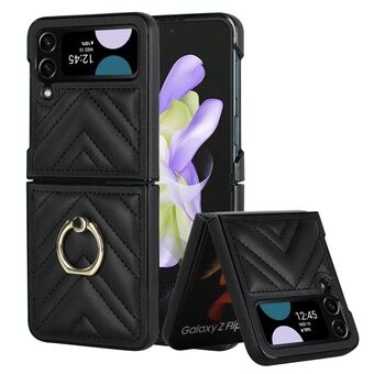 For Samsung Galaxy Z Flip4 V-shaped Folding Protective Phone Case with Rotating Ring(Black)