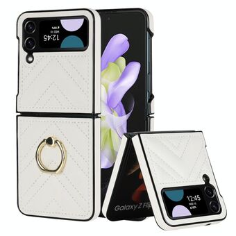 For Samsung Galaxy Z Flip4 V-shaped Folding Protective Phone Case with Folding Ring(White)