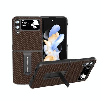 For Samsung Galaxy Z Flip4 Carbon Fiber Texture Protective Phone Case with Holder(Brown)