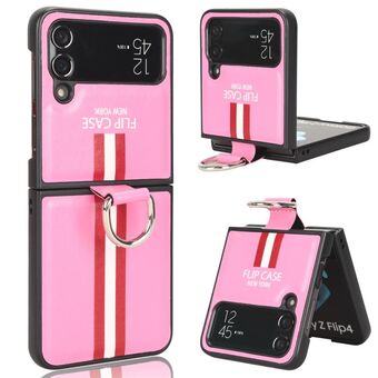 Για Samsung Galaxy Z Flip4 5G Απλή δερμάτινη θήκη τηλεφώνου με δαχτυλίδι (ροζ)