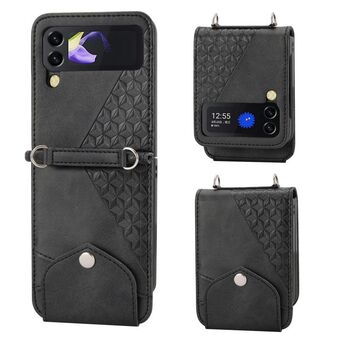 Για το Samsung Galaxy Z Flip4 Cubic Grid Calf Texture Δερμάτινη θήκη τηλεφώνου με λαιμό κορδόνι (Μαύρο)