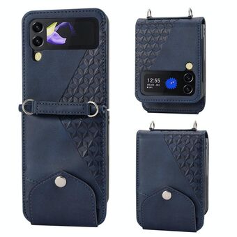 Για Samsung Galaxy Z Flip4 Cubic Grid Calf Texture δέρμα υπόθεση τηλεφώνου με λαιμό κορδόνι (μπλε)