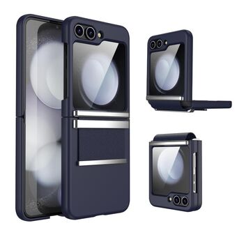 For Samsung Galaxy Z Flip5 5G Hardware Foldable Leather Shockproof Phone Case(Dark Blue Silver)