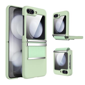 For Samsung Galaxy Z Flip5 5G Hardware Foldable Leather Shockproof Phone Case(Green Silver)