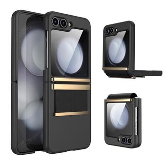 For Samsung Galaxy Z Flip5 5G Hardware Foldable Leather Shockproof Phone Case(Black Gold)