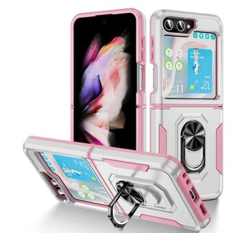 For Samsung Galaxy Z Flip5 5G Pioneer Armor PC + TPU Phone Case with Holder(White + Pink)