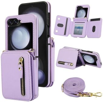 For Samsung Galaxy Z Flip5 Crossbody Zipper Dual Buckle Card Bag Folding Phone Case(Light Purple)