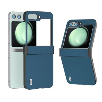 Θήκη τηλεφώνου Samsung Galaxy Z Flip5 ABEEL Hinge από γνήσιο δέρμα, βελούδινα απαλή, μαύρο περίγραμμα (Μπλε)