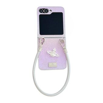 For Samsung Galaxy Z Flip5 Camellia Plaid Fabric PC Phone Case with Long Lanyard(White)