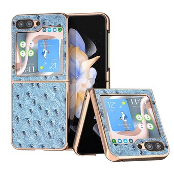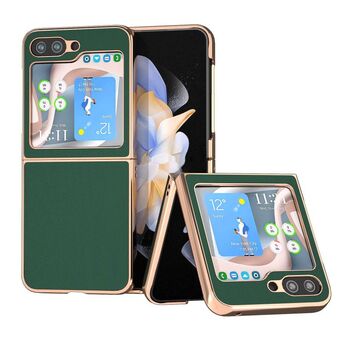 Θήκη τηλεφώνου Samsung Galaxy Z Flip5 από γνήσιο δέρμα με υφή στρουθοκάμπου, σειρά νανο-επίστρωσης (Πράσινο)